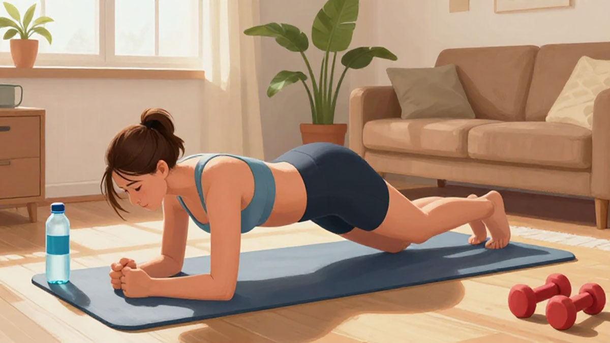 Selain kardio, latihan penguatan otot perut sangat penting untuk mengencangkan area perut. Plank menjadi salah satu gerakan paling efektif karena melibatkan banyak otot sekaligus. Cukup tahan posisi plank selama 20–30 detik dan ulangi sebanyak 3 set. Seiring waktu, Anda bisa menambah durasinya.