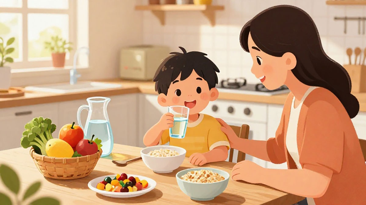 Selain serat, hidrasi yang cukup sangat penting untuk mencegah sembelit. Air membantu melunakkan tinja dan memudahkan pergerakannya melalui usus. Anak-anak disarankan minum air putih secara rutin sepanjang hari, terutama jika mereka aktif bergerak atau berada di cuaca panas. Jus buah alami tanpa tambahan gula juga bisa menjadi alternatif, tetapi tetap harus seimbang agar tidak mengganggu pola makan sehat anak. Minum susu dalam jumlah wajar juga membantu, namun hindari konsumsi berlebihan yang justru dapat memperparah sembelit pada sebagian anak.
